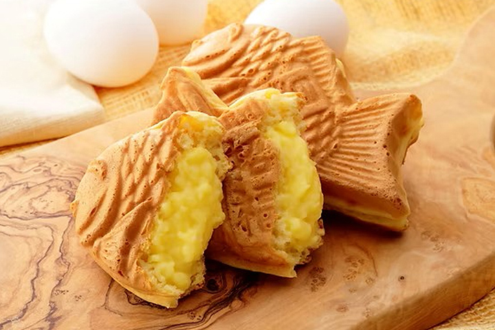 おめで鯛焼き本舗の生地は、通常の鯛焼きの生地より、数倍多くの卵を使用し、秘伝の小麦粉ミックスと特別な独自の製法で混ぜ合わせることで、非常に口溶けの良い、ふんわりした生地に仕上げております。
